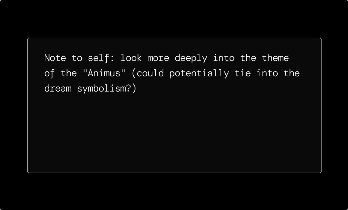 Clicking "Reflect on this insight" scans a previous conversation and starts up a brand new encounter with that same archetype using the past context as your starting point. People often leave sessions open just in case they want to revisit the topic later. This feature completely solves that hesitation. You can branch off your old work with a new conversation right where you left off.