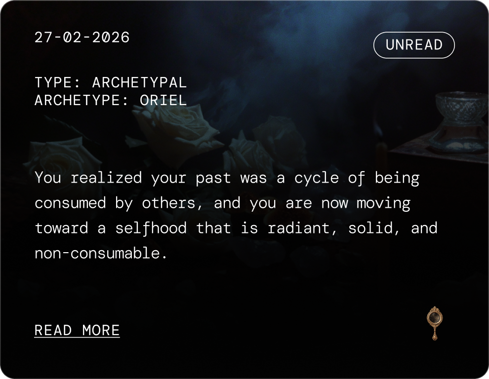 You understand by now that once a session is sealed, it lives in your Codex as a dedicated insight card. These cards are designed to give you immediate, visual feedback on your inner work. But here is an additional little Easter egg for you: when you click into an entry, look closely at the glyph next to the archetypal illustration.
